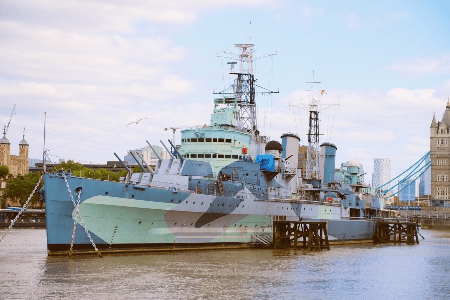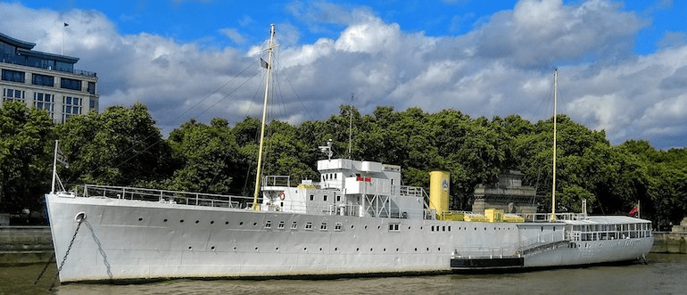 Это один из самых популярных кораблей Лондона. В наше время каждый желающий может собственными глазами увидеть его размеры, структуру и величие, ведь Белфаст расположен в центральной части Лондона на Темзе и служит в качестве музея. Внутри воспроизведена атмосфера боевых действий, можно почувствовать ход сражений, посмотреть, как манекены готовят суп и выпекают хлеб, как проходят операции и выдирают зубы. Здесь также есть большое количество лестниц, а сама экскурсия может длиться около полутора часов. Особенно такой процесс увлекателен для детей и вообще музей принимает большое количество посетителей ежедневно. Это один из филиалов выдающегося и удивительного Имперского военного музея.